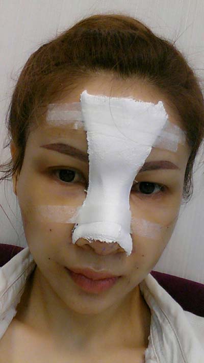 หลังผ่าตัดเสร็จ ต้องใส่เฝือกที่จมูกก่อนค่ะ บวมน้อยมาก หมอมือเบามากค่ะ