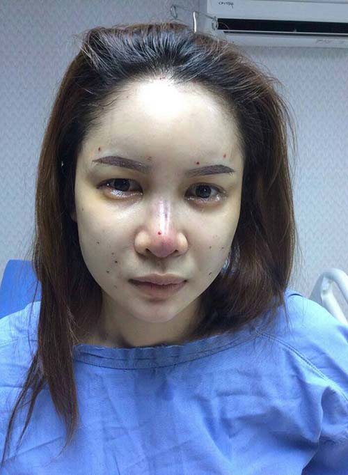 คุณหมอศรัณย์อธิบายว่า หนูเป็นคนโหนกแก้มสูง ดูแก้มตอบ ร่องแก้มลึก หน้าผากแบน แถมเป็นแอ่งตรงกลางหน้าผากอีกต่างหาก ส่วนตา 2 ชั้น หลบใน และหนังตาเยอะ ถ้าแก้แค่จมูกที่สั้นและเอียงก็ไม่จบค่ะ ยังไม่สวย ก็ยังดูหน้าเหนื่อยๆ ต้องวางแผนการศัลยกรรมที่คุณหมอศรัณย์เรียกว่า การดีไซน์รูปหน้าค่ะ