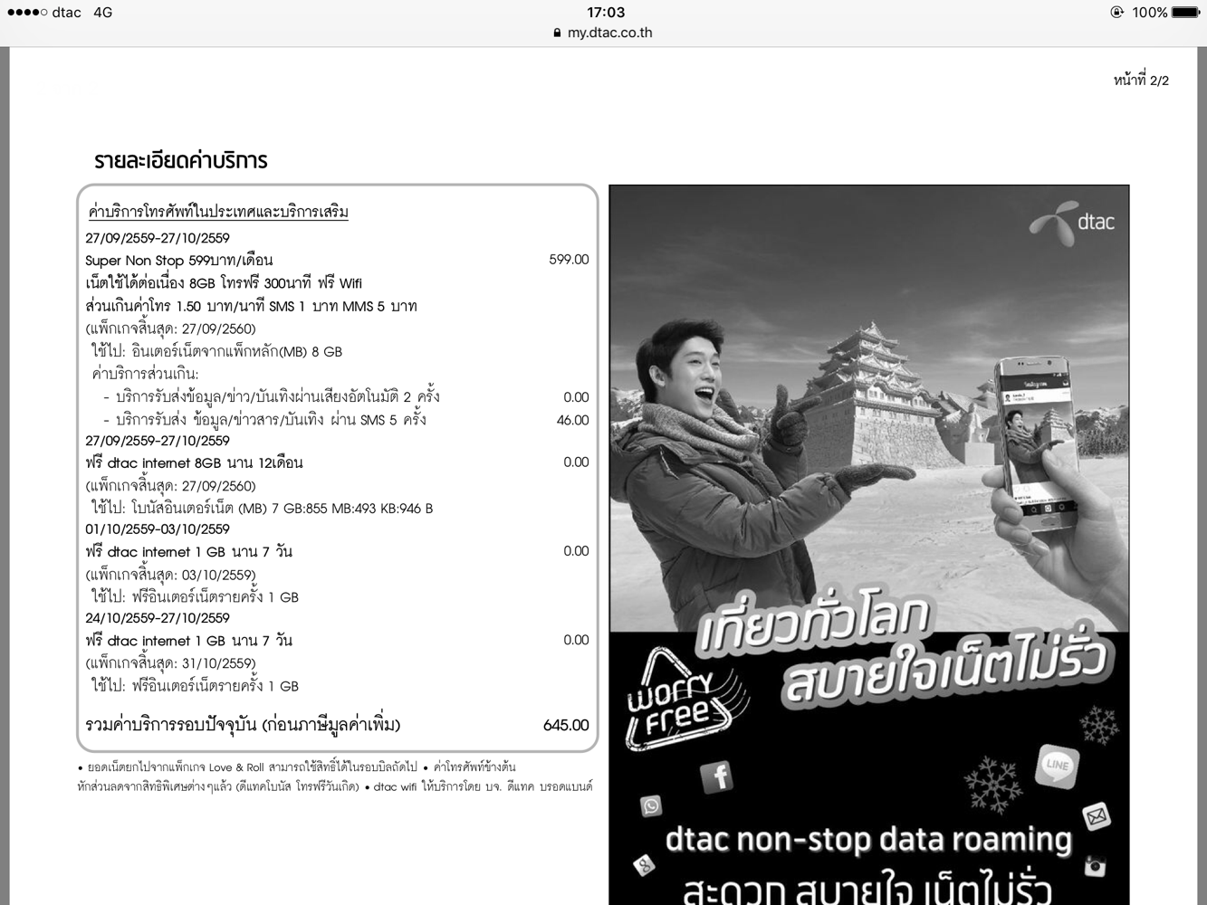 [dtac] ค่าบริการรอบบิลปัจจุบัน (หลังไมค์)