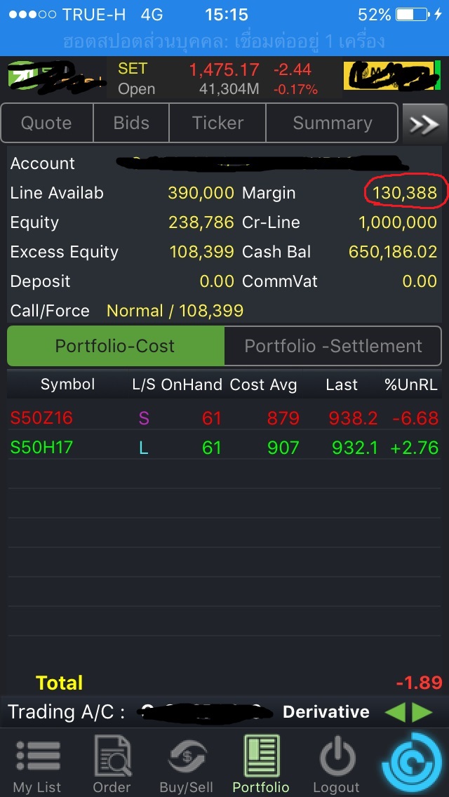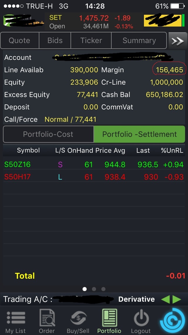 ผมเล่น TFEX มาประมาณ 3 ปีแล้วครับ โดยใช้บริการผ่านโบรคหนึ่งที่พูดชื่อไปใครๆก็รู้จัก ผ่านโปรแกรมเทรดที่มี Portfolio Cost และ Portfolio Settlement ที่หลายๆคนงงว่าจะมีทำไมตั้ง 2 Tab