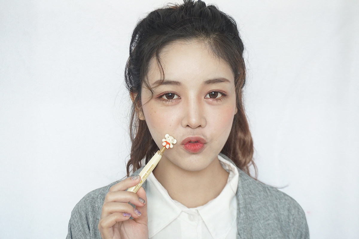 9. ขั้นตอนสุดท้ายแล้วจ้า ใช้ตัวเดิมนั่นแหละทาปากสไตล์เกาหลี โดยการค่อยๆแตะที่ปากด้านในก่อนแล้วค่อยเกลี่ยให้สีออกมาด้านนอก จะได้ปากที่ดูด้านในเข้มกว่าด้านนอกแบบเกาหลีๆค่ะ