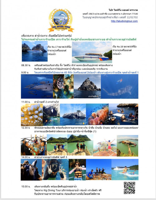 ขายต่อ ราคาถูก ทัวร์ วัน เดย์ ทริป เที่ยว 4 เกาะ ดำน้ำ 3 เกาะ ชุมพร-ประจวบ / ขายมัดจำ ค่าเช่า รถตู้+คนขับ