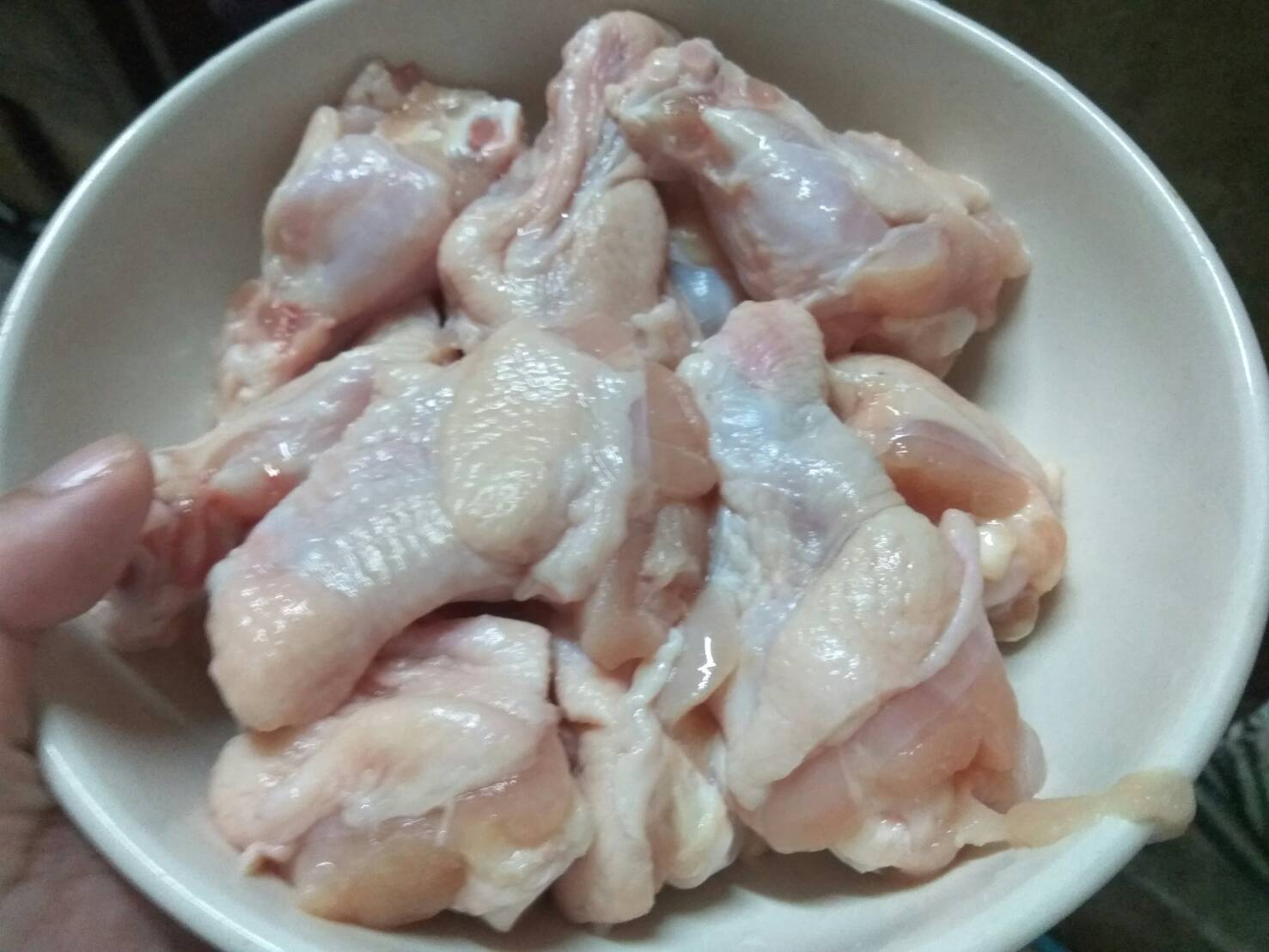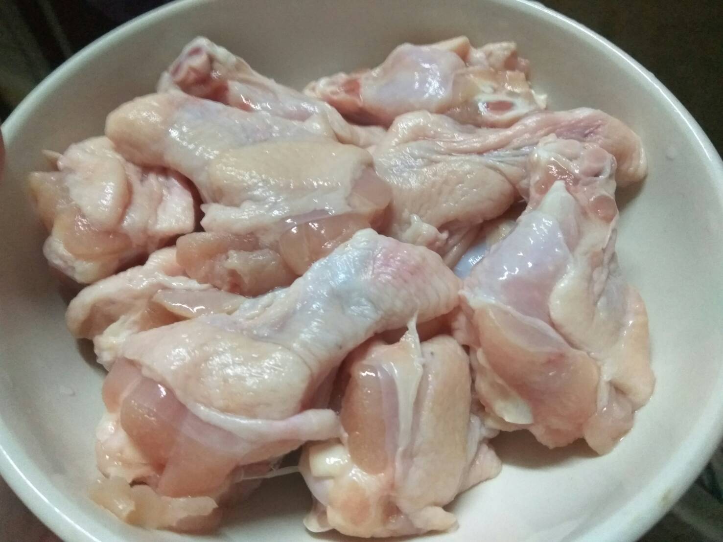 1. อย่างแรกเราก็เอาเจ้าไก่น้อยๆ มาล้างทำความสะอาดแล้วใส่ภาชนะรอไว้เก๋ๆ