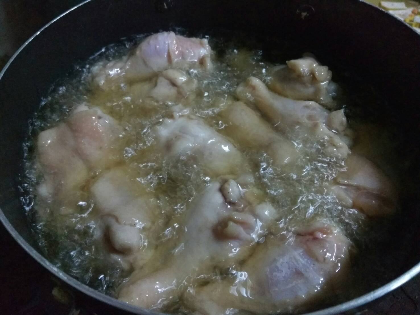 3. เอาน้องไก่เทลงไปเลยค่า น้ำมันขี้เกียจรอเดือด ใส่เลย