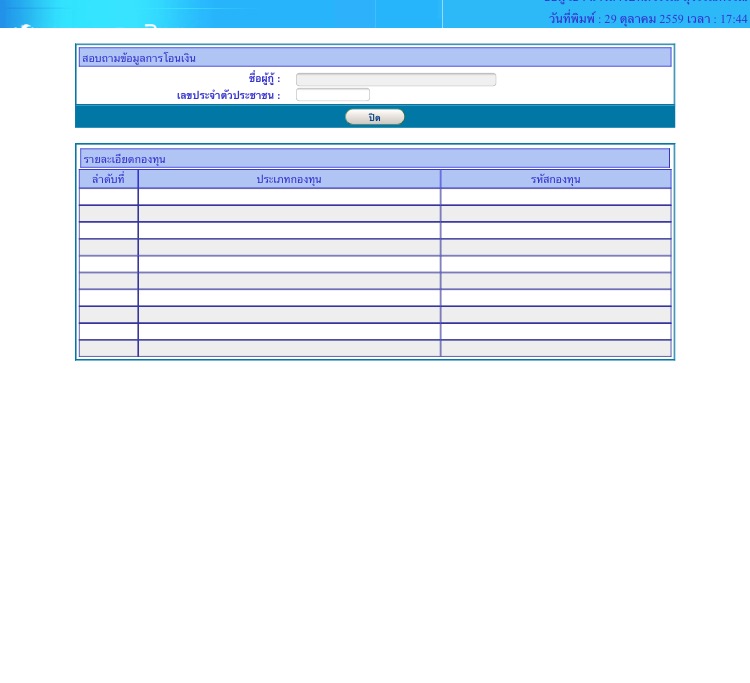 ใส่รหัสประชาชน และวันเกิดเรียบร้อย กดเลือกข้อมูลการโอนเงิน กลับขึ้นเป็นหน้าตารางเปล่า
