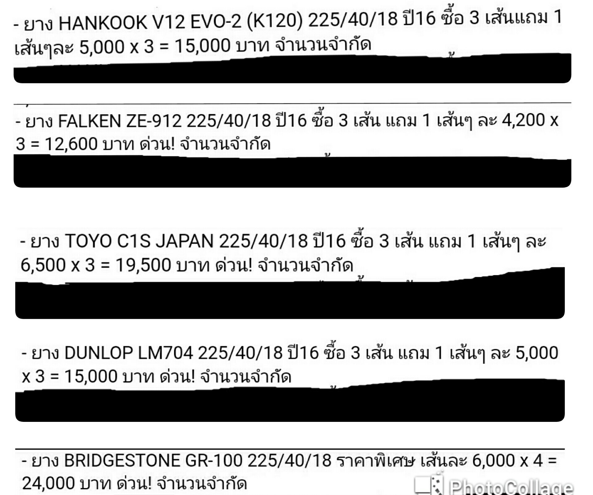 สอบถามคำถาม ยาง 5 ยี่ห้อและราคาตามรูปนี้