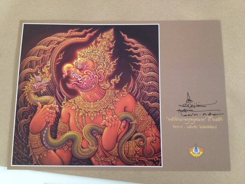 ภาพพิมพ์ "พลังอำนาจครุฑหยุดนาค" ปี 2556 ผลงาน อ.เฉลิมชัย โฆษิตพิพัฒน์ พร้อมลายเซนต์สด ขนาด 29.2x21 cm.