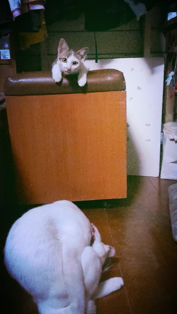มารู้ตัวอีกที ก็มีแมวตัวน้อยปีนจากหลังมาอยู่ที่ไหล่ ซะแล้ว ด้วยความซนของบอย และดูไม่ละเอียด
