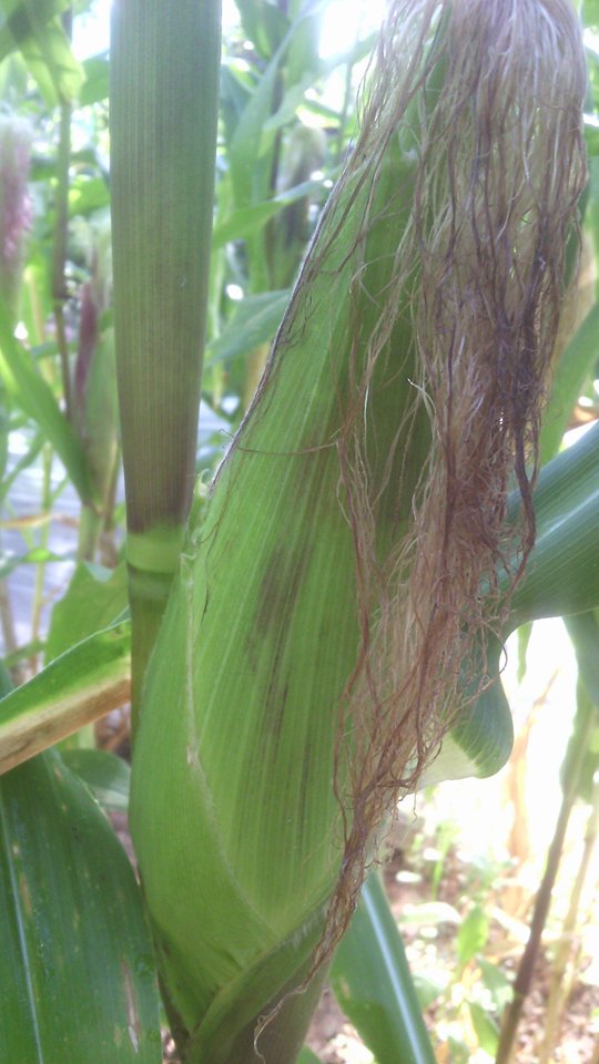 แล้วผมเลยเกิดความสงสัยว่า เอ๊ะ ข้าวโพดมันผสมเกสรยังไงว่ะ เพราะดอกมันอยู่ข้างบนส่วนฟักมันอยู่ข้างล่าง แล้วผมก็สังเกตดีๆก็เริ่มสงสัยขนมัน