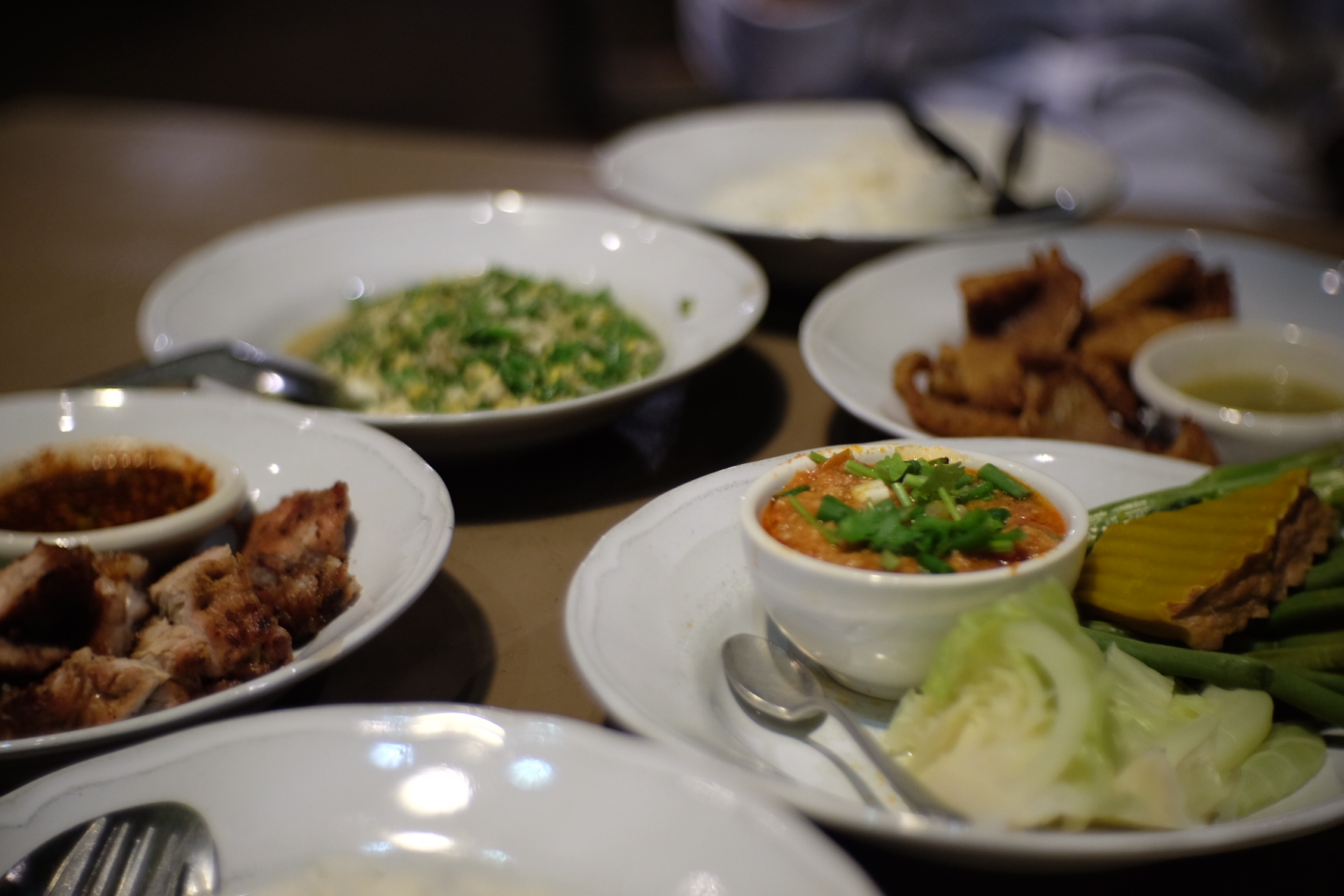 อย่าถามค่ะว่า 3 ร้านแล้ว อาการตอนนี้เป็นยังไง บอกได้เลยว่าจุกจนถึงลิ้นปี่ แต่สายกินอย่างเรามีหรือจะหยุดแค่เท่านี้ เดินย่อยสักพักก็ถึงเวลาอาหารเย็นพอดี ไปค่ะ! ไปต่อคิวรอกินอาหารเหนือที่ "ต๋องเต็มโต๊ะ" พอไปถึงนี่อยากจะเปลี่ยนชื่อร้านเป็น ต๋องโต๊ะเต็ม กันเลยทีเดียว แต่ก็ยังดีที่รอคิวไม่นาน ประมาณครึ่งชั่วโมงก็ได้โต๊ะนั่งละ จริงๆเราอยากลองอาหารเหนือหลายอย่างเลย แต่เพื่อนเรานางบอกไม่เอา กลัวกินไม่ได้ เลยต้องกินอะไรที่ง่ายๆ และคุ้นเคย ดังภาพค่ะ ราคาคือถูกมาก กับข้าว 4 อย่าง ข้าวเปล่า ราคาแค่ 300 นิดๆเอง แถมอร่อยมากๆ