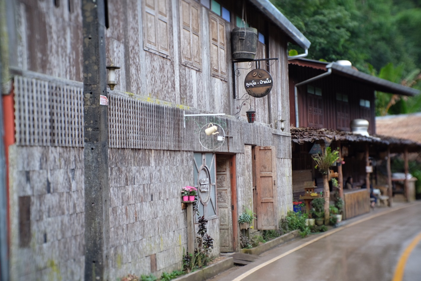 หลังจากนั้นเราก็แบกกล้องเดินเล่นในหมู่บ้านไปเรื่อยๆ จนไปถึง "ร้านกาแฟชมนก ชมไม้" ที่ที่มีคนถ่ายรูปและเช็คอินไม่น้อย (เราก็เป็นหนึ่งในนั้น 555555) เพราะมี top view ที่ดีที่สุดในหมู่บ้าน