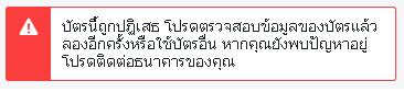 คือว่าจะโปรโมทโฆษณาสินค้า ซึ่งการชำระเงินเราใช้บัตรเดบิตกสิกร แต่พอใส่ลงไปครบทุกอย่าง มันบอกว่าล้มเหลว แล้วก็ให้ไปชำระวิธีอื่น ทำไงคะ เสียเงินค่าทำบัตรไปแล้ว ช่วยหน่อยนะคะ