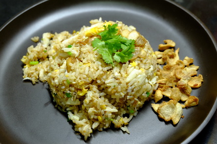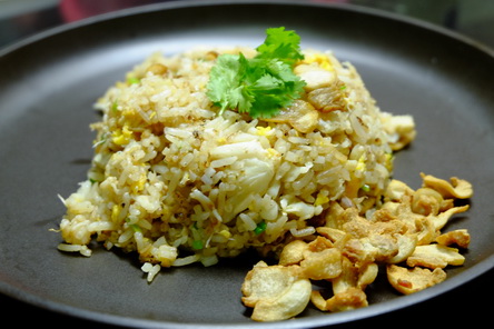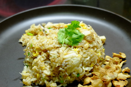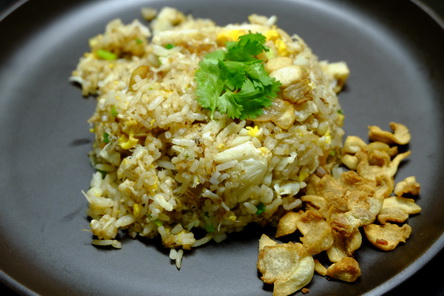 มันไม่มีอะไรที่ตายตัว แต่วันนี้เป็นเมนูที่ส่วนผสมหาได้ง่ายๆ มีติดครัวแทบทุกบ้านแน่นอน อาจจะยกเว้นเนื้อปู ที่อาจจะต้องหาซื้อเอาสักหน่อย ปัจจัยเยอะหน่อยก็เอากรรเชียงปูไปเลย ก็จะดูดีน่ากิน ส่วนผสมวันนี้ ใช้ซีอิ๊วขาวนะครับ ไม่ใช้ซอสปรุงรส ถ้าเป็นลูกคนจีนส่วนใหญ่อาม่า แม่ ก็น่าจะเคยทำข้าวผัดชังจู(ต้นหอม) ใส่ไข่ ธรรมดาเนี่ยแหละครับ หอมสุดแล้ว ไม่ต้องปรุงแต่งอะไรมากมาย