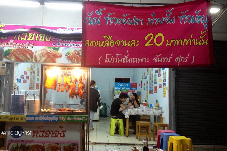 ด้วยความที่ป้ายแขวน จันทร์และศุกร์ ลดราคาเหลือจานละ 20 บาท เลยแวะดูระบุว่าเฉพาะเมนู "ก๋วยจั๊บ , ข้าวผัดปู , ข้าวต้มปลา เหลือจานละ 20บาท"