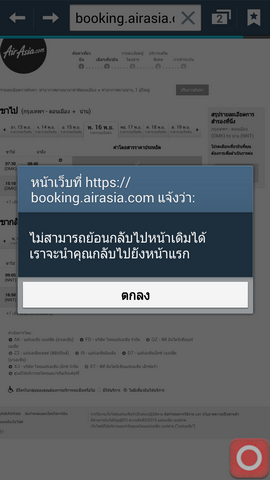 Airasia แจ้งว่า "ไม่สามารถย้อนกลับไปหน้าเดิมได้ เราจะนำคุณกลับไปยังหน้าแรก"