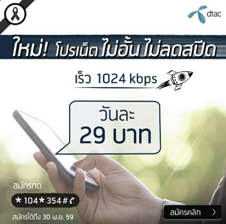 ใหม่!!!โปรดีแทคความเร็ว 1024 kbps 29 บาท