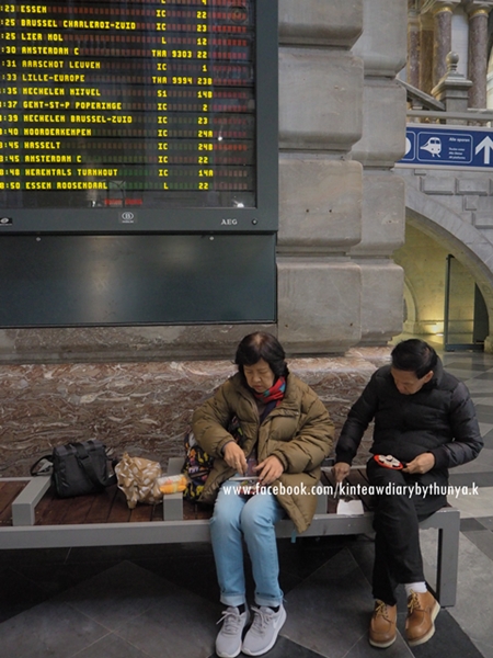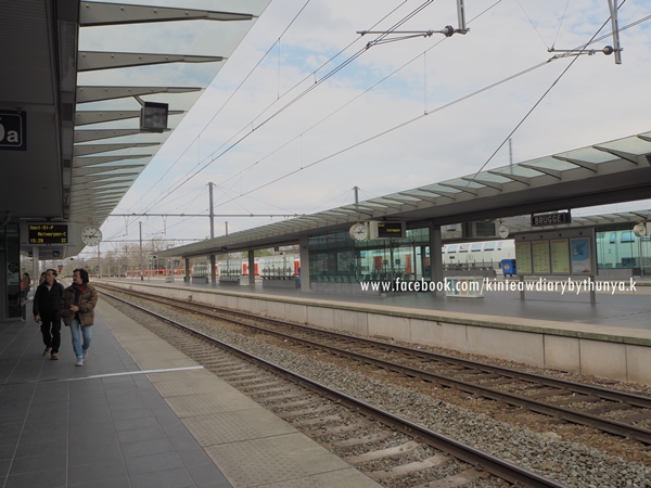 กระเป๋าครบ เสบียงพร้อม ออกเดินทาง เช็ครอบ หา platform แล้วก็รอๆรถไฟ รอบ 4.07 PM นั่งไปลง Antwerp (Belgium) ทีแรกก็งงเหมือนกัน เกือบขึ้นผิดขบวน เพราะรถไฟมันมาถี่มาก เราไปรอตั้งแต่สามโมงกว่าผ่านไป 3 - 4 ขบวน สุดท้ายขบวนเราก็มา จอที่platform+รถไฟ จะโชว์ Brussel-Midi คือสถานีปลายทาง...ใช้เวลาเดินทางประมาณ 2 ชั่วโมง ระหว่างทางก็เจอทั้งทุ่งทิวลิป กังหันลมใหญ่ๆ