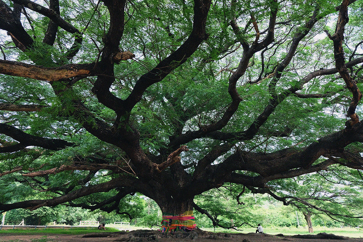 เราเริ่มต้นเดินทางออกจากกรุงเทพแถวดอนเมืองเช้าวันเสาร์ เดินทางถึงกาญ ตอน 10 โมงครึ่ง Checklistแรกที่เราจะไปเยี่ยมชมและแวะถ่ายรูปกันคือที่ต้นจามจุรียักษ์ ซึ่งอยู่ในพื้นที่ของกรมการสัตว์และเกษตรกรรมที่ 1 กรมการสัตว์ทหารบก คาดว่ามีอายุไม่ต่ำกว่า 100 ปี ลำต้นว่าใหญ่แล้ว กิ่งก้านสาขาของต้นยิ่งใหญ่กว่า ครอบคลุมพื้นที่กว่า 1 ไร่เศษ ให้ความร่มเงาได้เป็นอย่างดี เห็นแล้วร่มรื่นมากๆ
