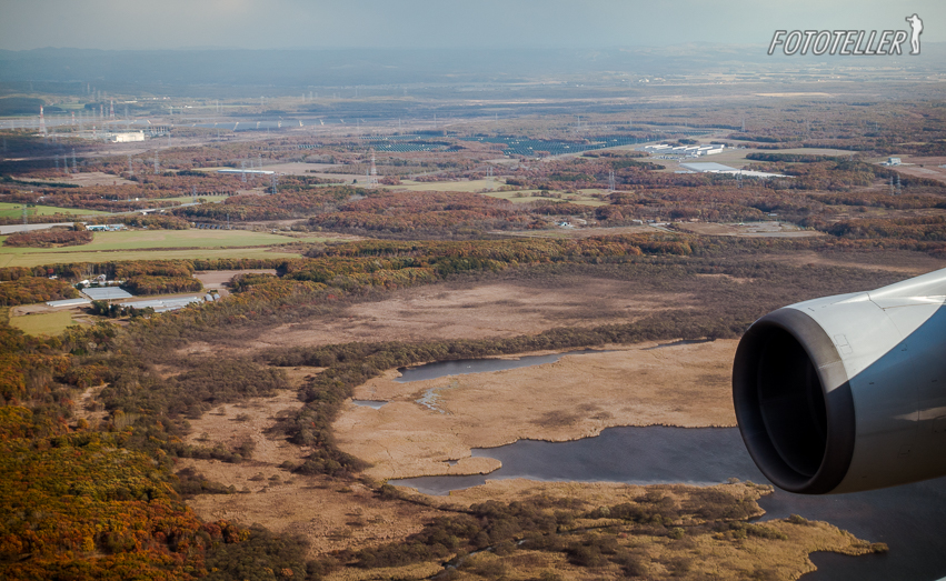 ทริปฮอกไกโดครั้งนี้ผมซื้อตั๋วไว้ล่วงหน้าก่อนการเดินทางประมาณหนึ่งเดือน ช่วงนั้นทางสายการบินมีโปรโมชั่นออกมาพอดี ถ้าจำไม่ผิดวันที่ผมซื้อเป็นวันสุดท้ายของรายการโปรโมชั่น ได้ตั๋วไปกลับในราคา 14,120 บาท ผมแวะเที่ยวไทเปก่อนแล้วจึงค่อยบินต่อไปฮอกไกโด ถึงฮอกไกโดบ่ายวันที่ 24 ตุลาคม 2559 รู้เหมือนกันว่าถ้าจะมาดูใบไม้เปลี่ยนสีที่นี่ควรจะต้องมาประมาณกลางเดือนตุลาเพราะว่าใบไม้ที่ฮอกไกโดเปลี่ยนสีก่อนที่อื่นๆ ตอนที่เครื่องบินใกล้จะถึงผมคอยมองลอดหน้าต่างลุ้นว่าใบไม้จะมีสีสันอยู่หรือไม่หรือว่าถูกลมหนาวพัดพาร่วงลงไปหมดแล้ว และนี่ก็คือสิ่งที่ผมได้เห็นจากทางหน้าต่างเครื่องบิน