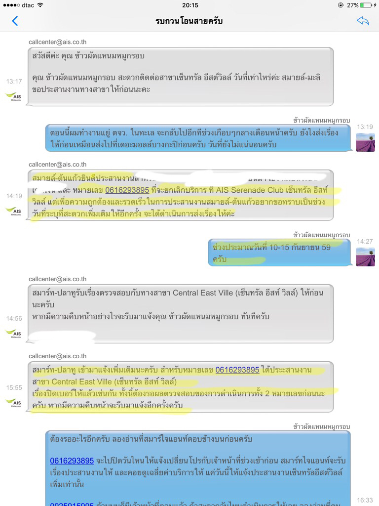 ais ประสานงานได้ชุ่ยมาก ขอร้องเรียน และทราบผลเร็วที่สุด