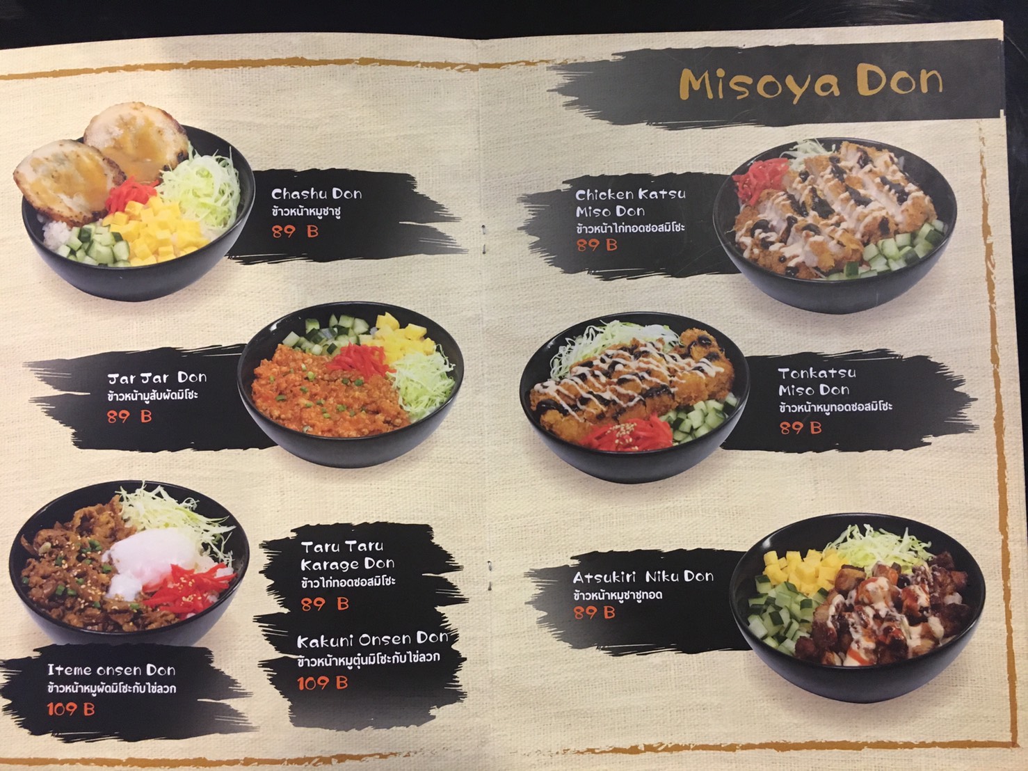 ร้านเเรกชื่อร้านว่า “Misoya Don” เป็นร้านอาหารญี่ปุ่นที่เปิดใหม่อยู๋ใกล้ๆเคเอฟซีและร้านก๋วยเตี๋ยวเรือค่ะ ซึ่งเราจะพาไปดูเมนูของร้านนี้ก่อนว่ามีอะไรบ้าง