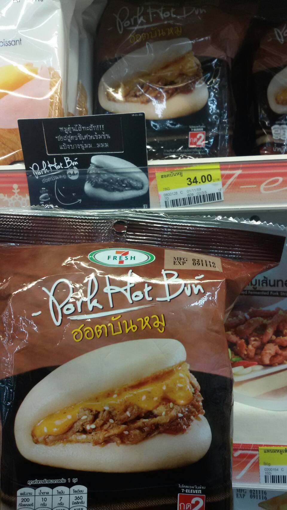 ราคาอยู่ที่ 34 บาท ... จะใส่ซองมาเหมือนซาลาเปาที่ขายอยู่ปกติ แขวนอยู่หมวดเดียวกับเบอเกอร์และแซนวิช ค่ะ