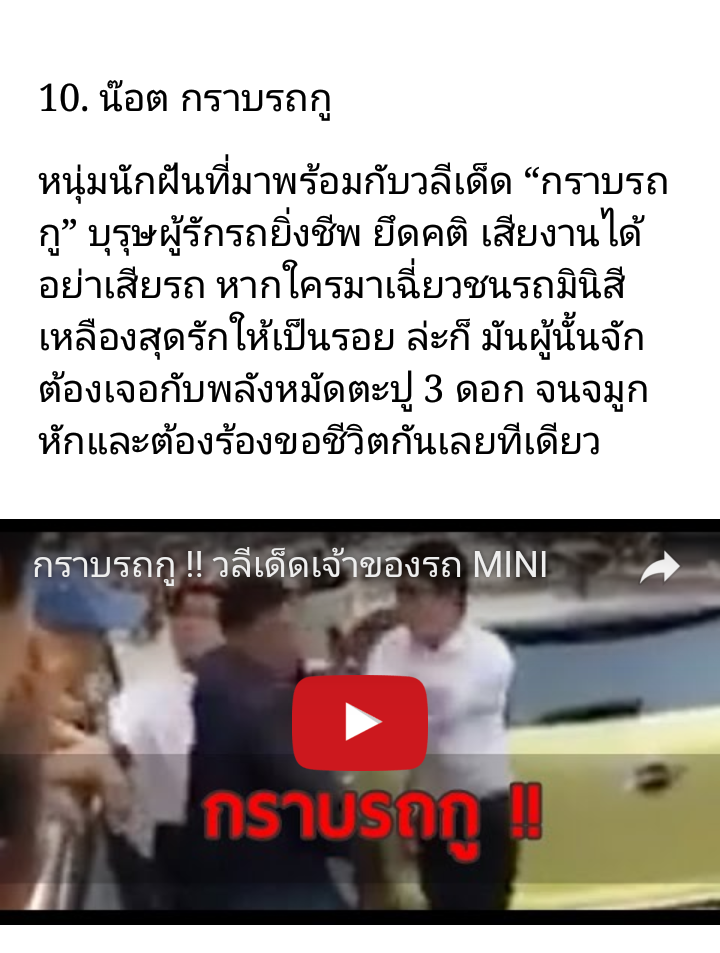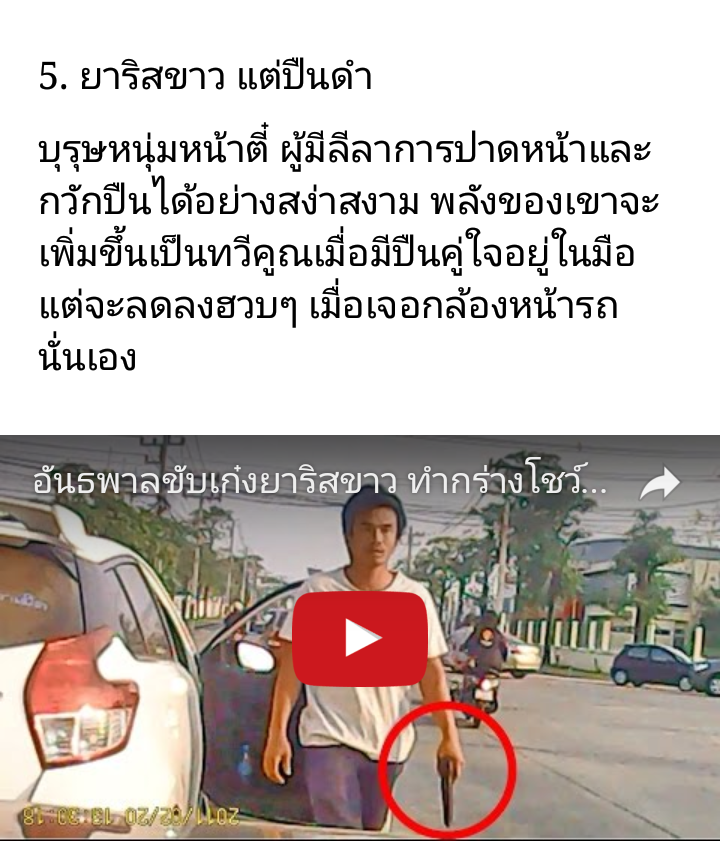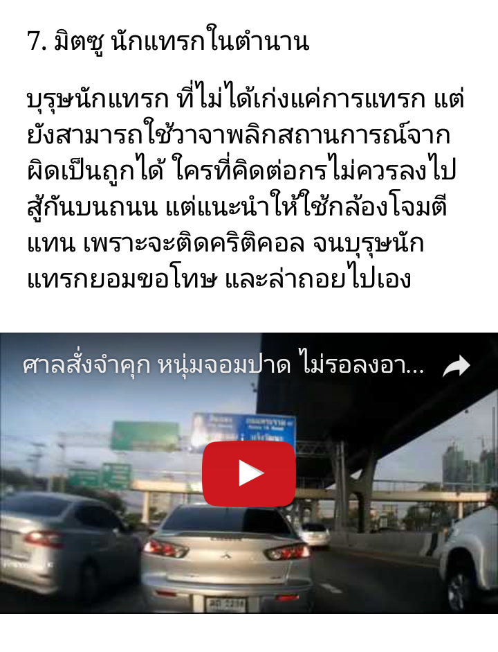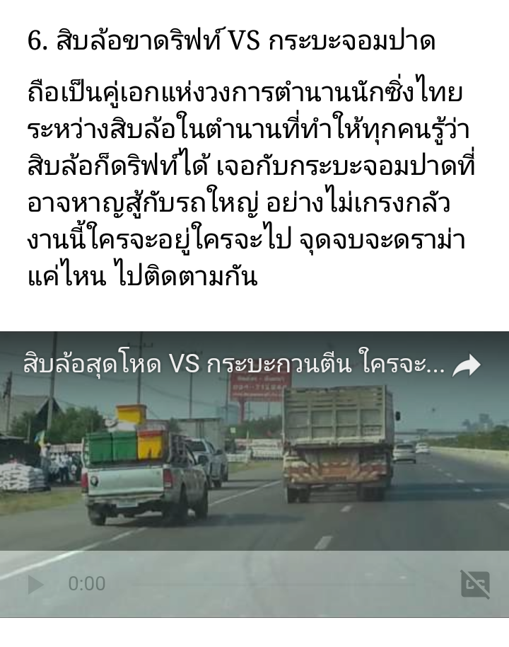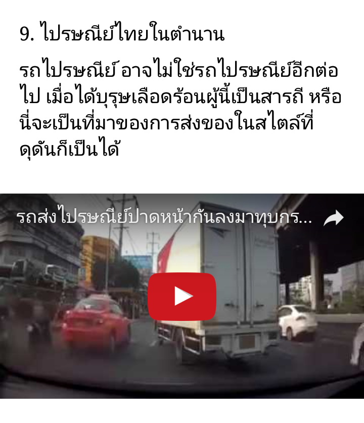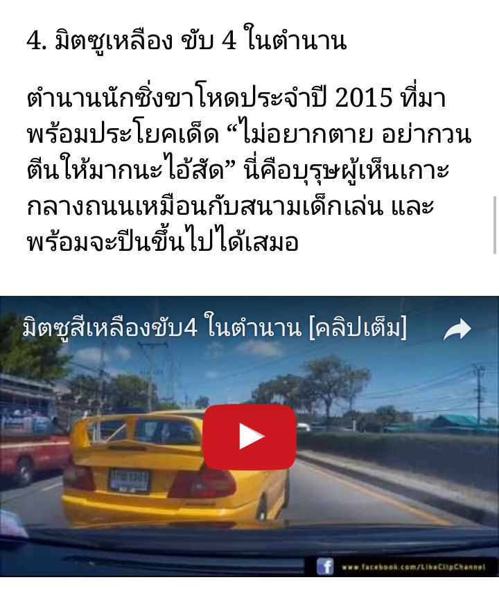 วินาทีที่ 25 เป็นต้นไป เผยแพร่เมื่อ 16 ก.พ. 2017 CR “Yayee TantenMobile” https://www.youtube.com/watch?v=wDtzTiKuCak อุบัติเหตุบนท้องถนน เกิดขึ้นได้ตลอดเวลา ทั้งรถชน รถเฉี่ยว รถคว่ำ บางค