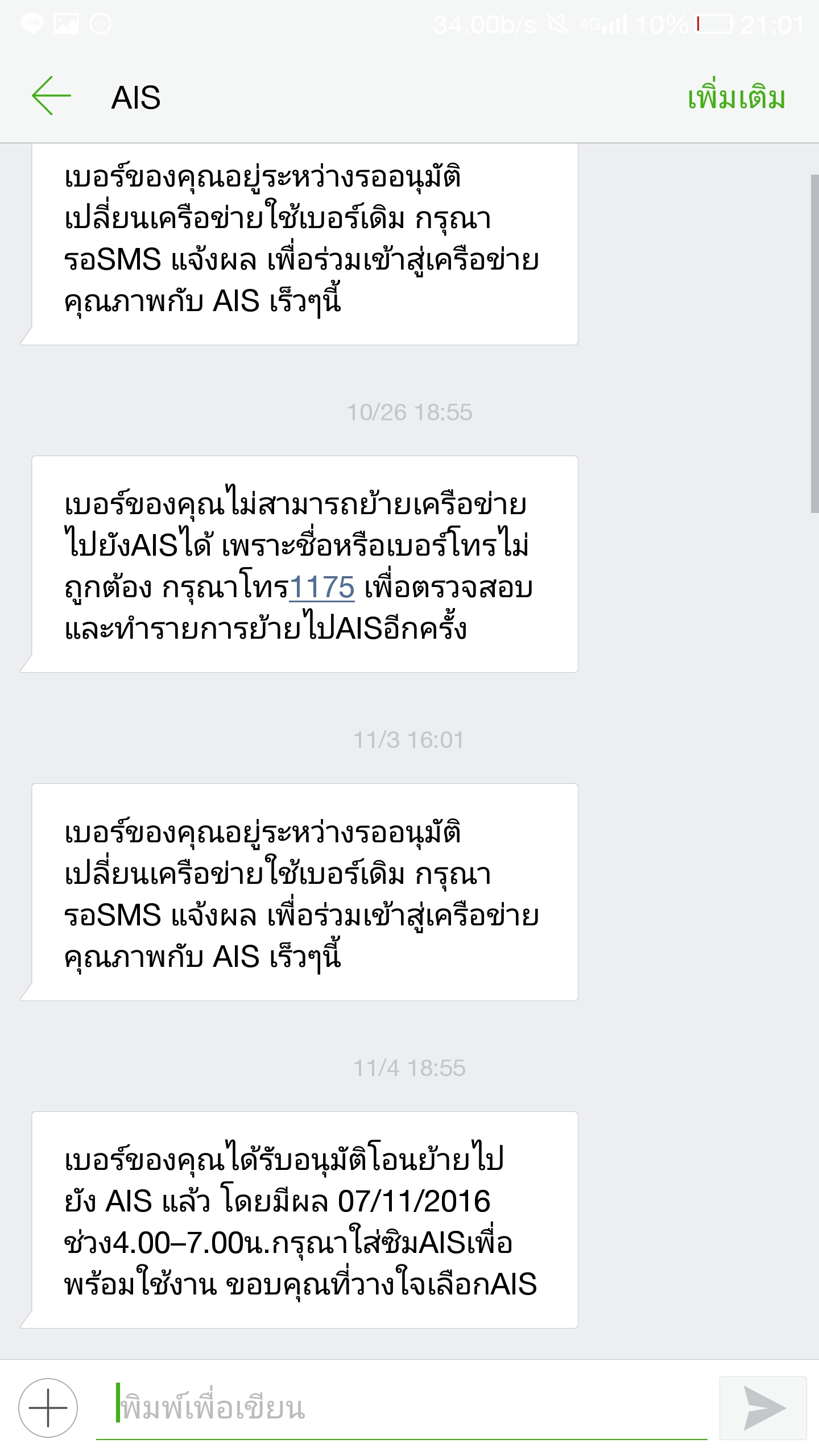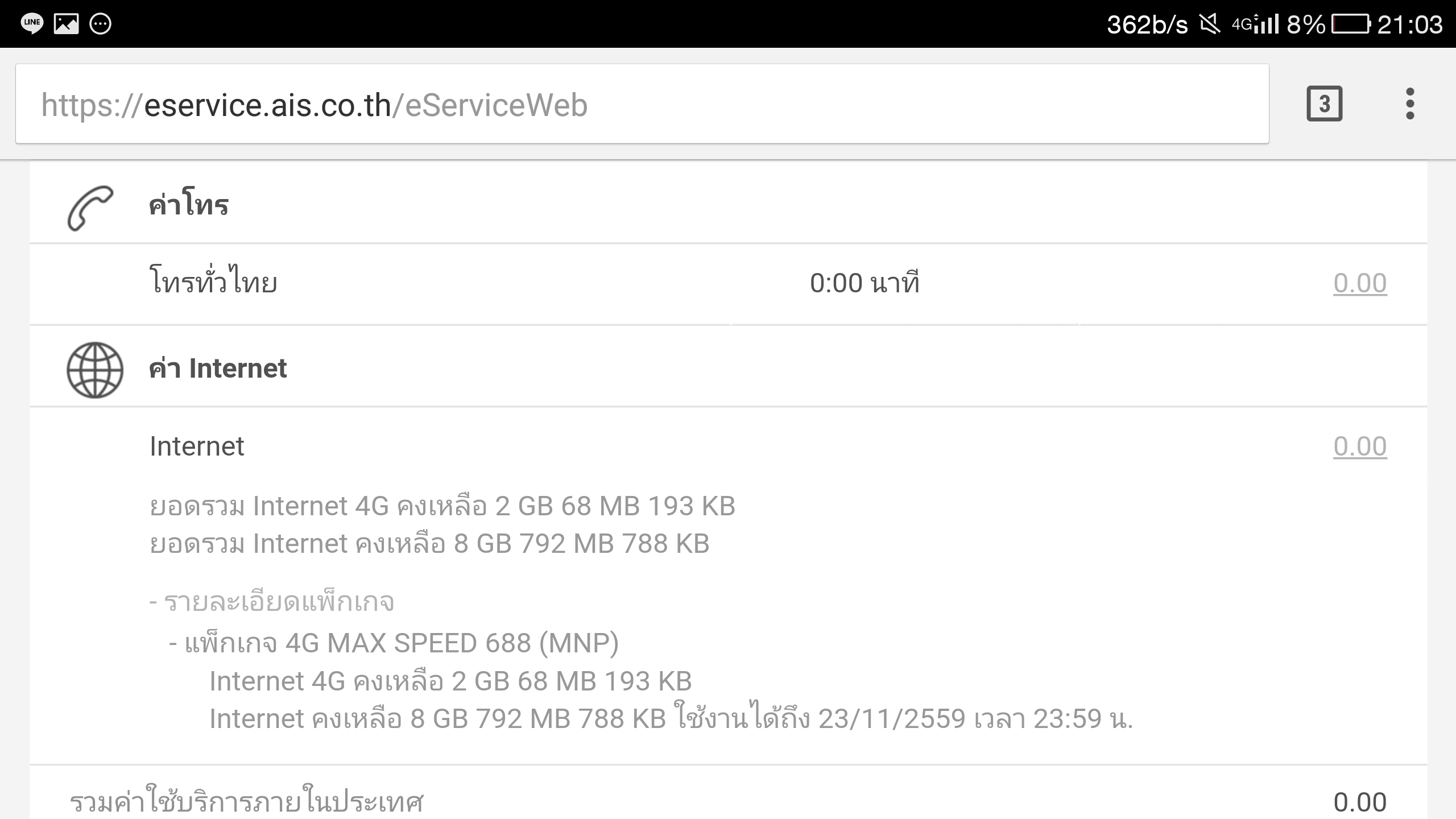 ผมไม่เคยใช้ซิมแบบรายเดือนมาก่อน เมื่อวันที่ 24 ต.ค. 59 ที่ผ่านมาได้ไปย้ายค่ายจากทรูเป็น AIS แต่ก็ยื่นเรื่องไม่ผ่านครับ เลยต้องไปยื่นเรื่องใหม่ พึ่งมาใช้ได้วันนี้(7 พ.ย. 59) ช่วงเที่ยงผมจึงเปลี่ยนจากซิมเดิมเป็นซิม AIS ก็ศึกษาจากเพื่อนๆที่ใช้รายเดือนว่ามันเช็คว่าเน็ตเหลือเท่าไหร่ยังไง พอผมเช็คใน eservice ปุ๊บ อึ้งเลยครับ เน็ตผมหมดไป 9 Gb ไม่ทราบว่าจะแจ้งให้ทาง AIS ตรวจสอบได้ที่ไหนบ้างครับ