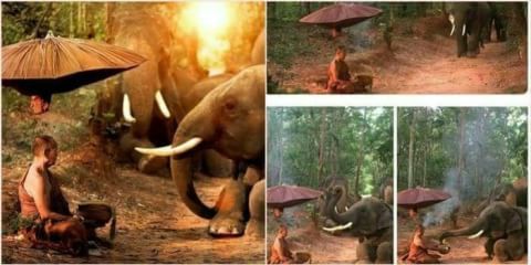 ปาฏิหารย์ ช้างป่าไม่ทำอันตรายพระสงฆ์ที่ปักกลดขวางทางเดิน