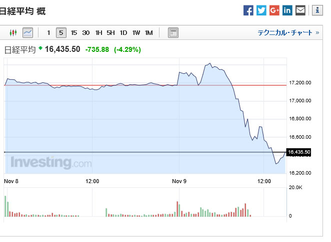 Nikkei 225 เปิดปุ๊บลงทันทีเกือบ 500 จุด ลบต่อจากวันศุกร์ เกิดจากข่าวอะไรครับ
