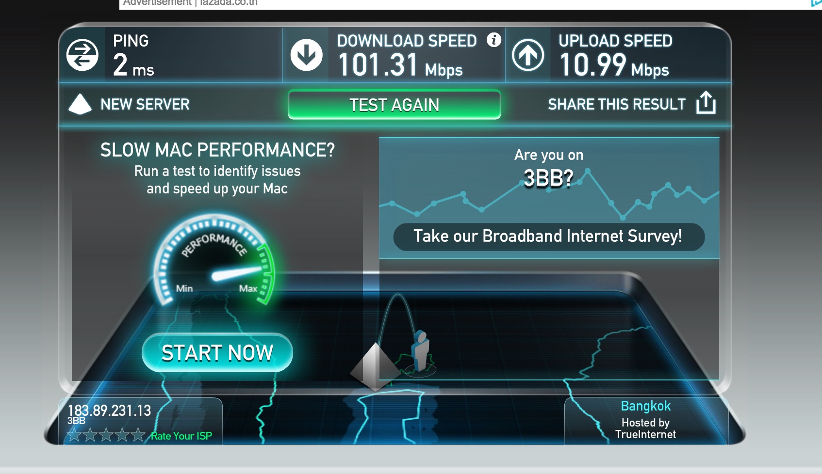เขากำลังทดสอบความเร็ว 100/10 Mbps แบบโปรต่ำกว่าพันเปล่าครับ