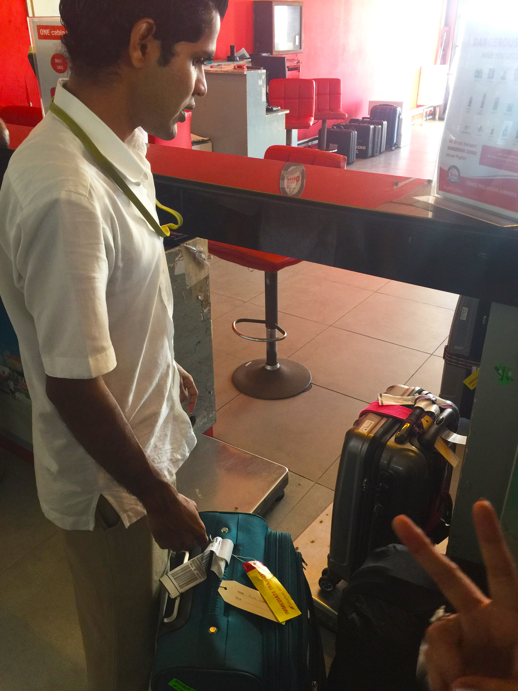 เสร็จแล้ว มาเช็คชื่อที่จองตั๋วไว้ ชั่งน้ำหนักกระเป๋า