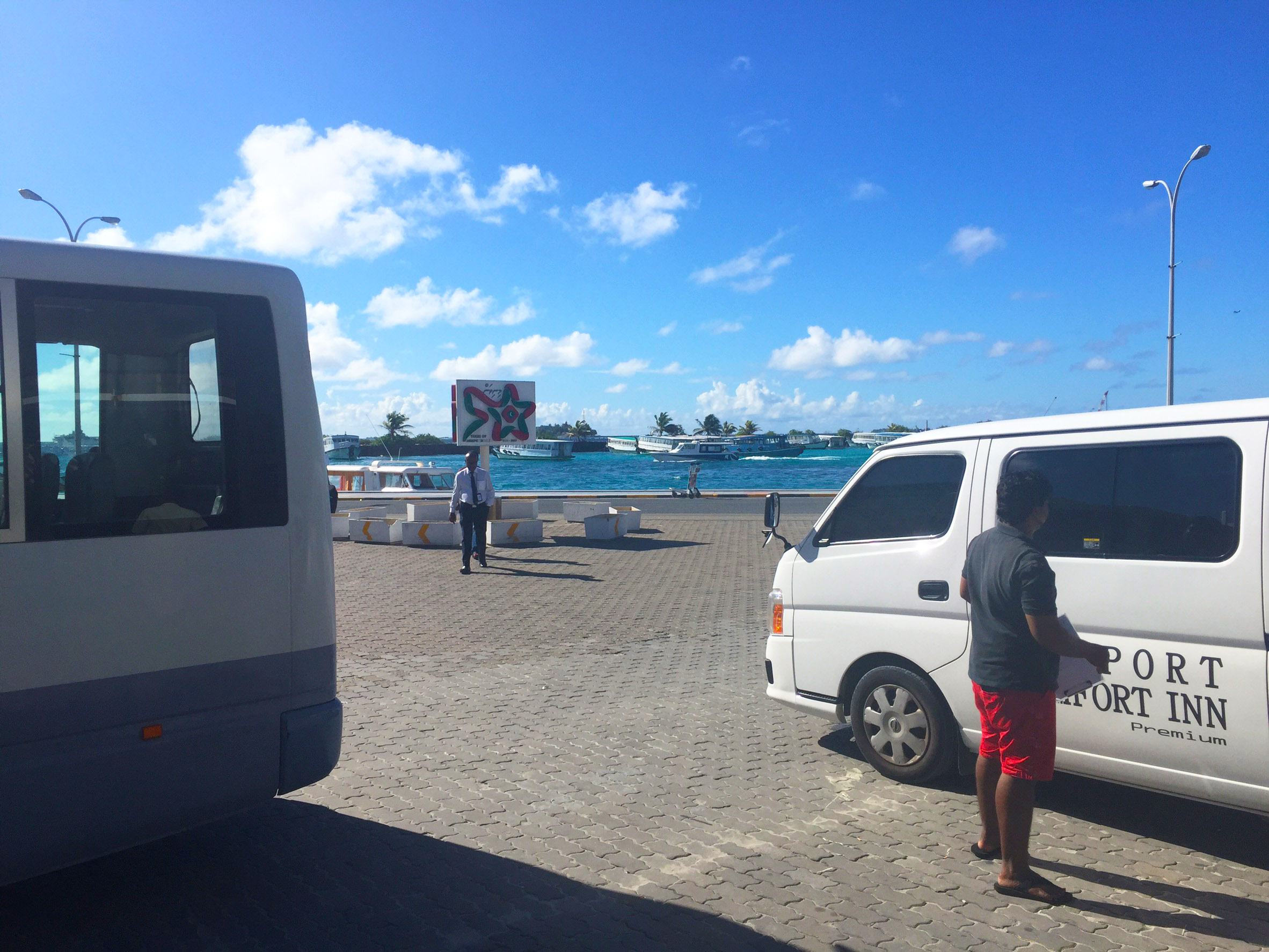ขึ้นรถบัสของท่าที่จอดเครื่องบินน้ำที่จัดเตรียมไว้ เพื่อพาเรา มานั่งรอที่ Lounge ของ Coco Palm รอขึ้นเครื่องบินน้ำ