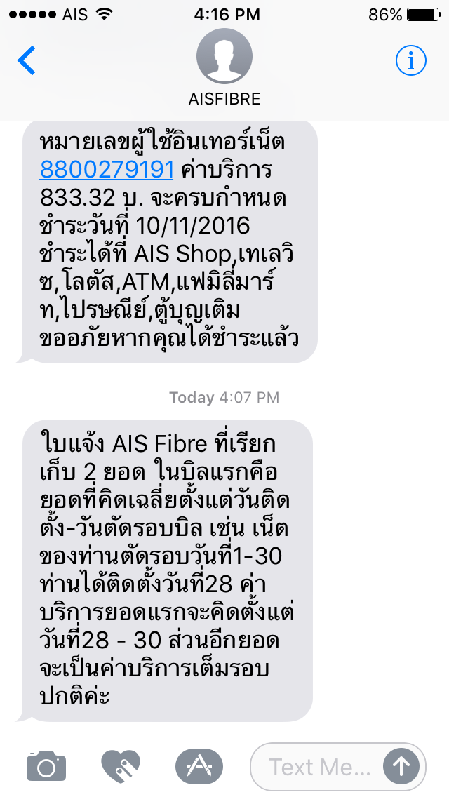 และผมได้ติดตั้งวันที่ 2 ตุลาคม 59 แล้วทำไมถึงคิดค่าบริการ2บิล ทั้งๆที่เริ่มใช้วันที่2 ทำไมไม่เป็นบิลเดียว ไหนบอกลูกค้าAISลด10%ถ้าลดมันก็คงไม่เกิน590บวกค่าภาษี