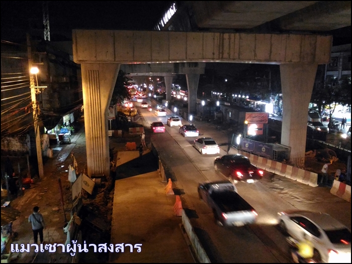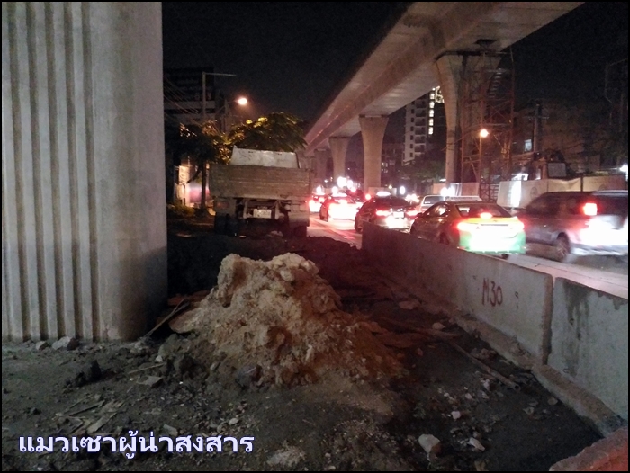 การก่อสร้างรถไฟฟ้ามีมานาน 5-6 ปีจนชินชาเป็นเรื่องธรรมดาไปแล้ว เมื่อก่อนมอเตอร์ไซด์ไม่ขึ้นมาวิ่งบนฟุตบาทมากนัก เพิ่งมาวิ่งกันเกลื่อนตอนตอม่อรถไฟฟ้าผุดขึ้นมา แม้แต่ตำรวจก็ขี่มอเตอร์ไซด์บนฟุตบาท เมียตำรวจก็เช่นเดียวกัน