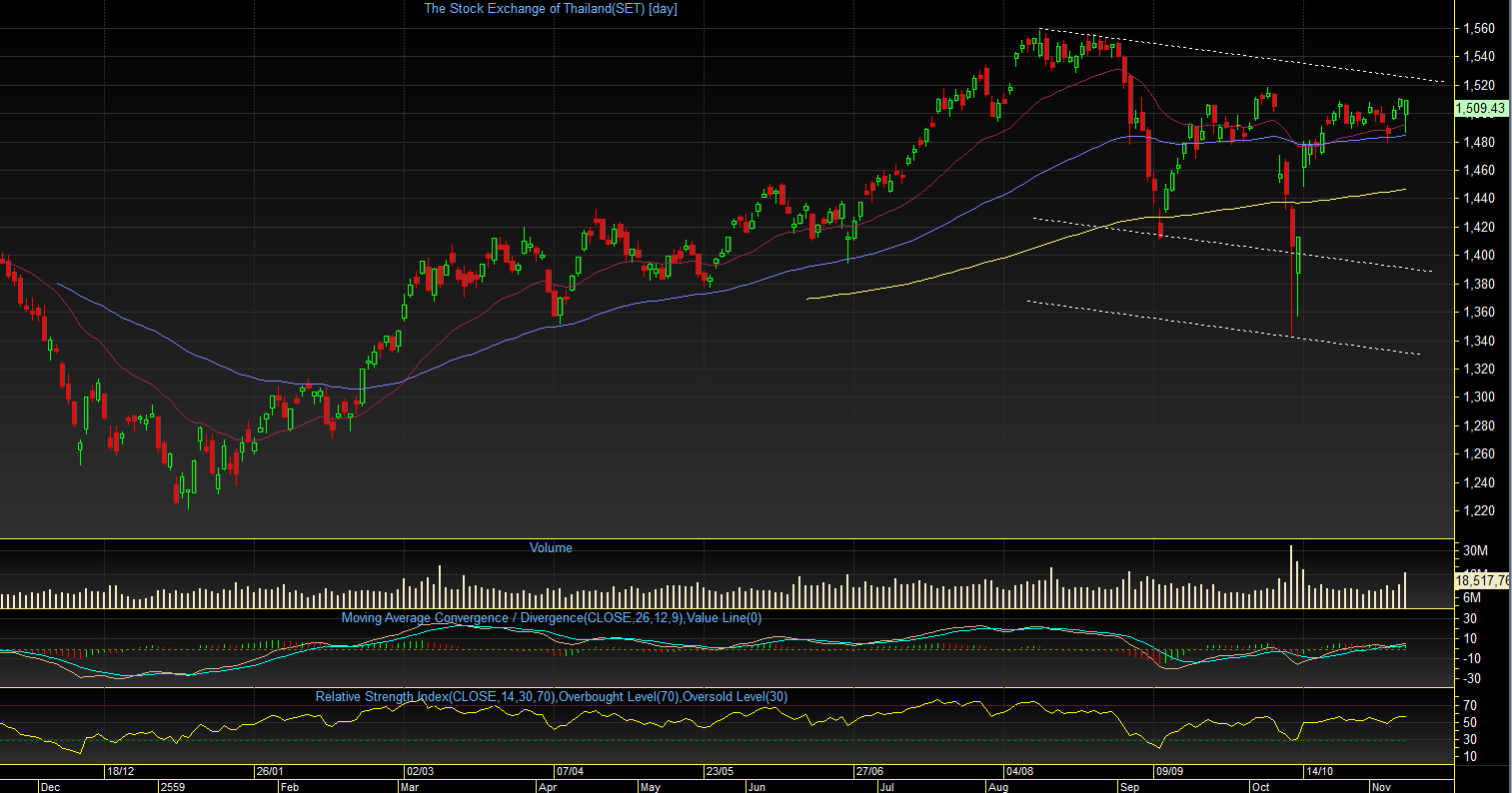 SET index TF day : หากวันนี้ พุ่งทะลุ Resistance line ได้ มีโอกาสที่จะขึ้นไปทดสอบ High
