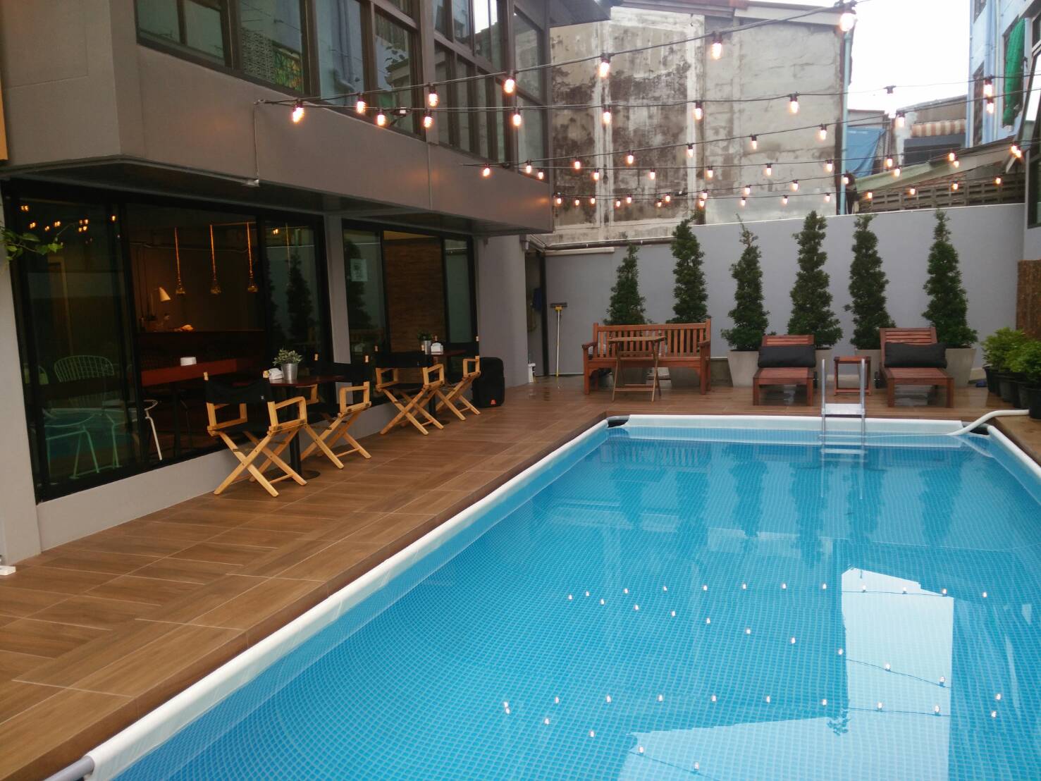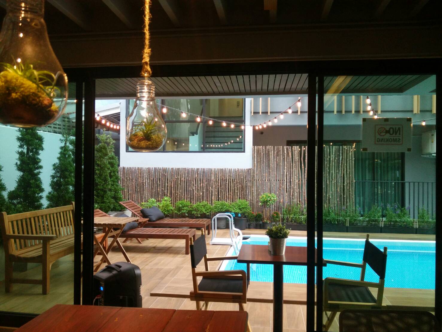 ที่นั่งกินข้าวก็รอบๆบริเวณสระว่ายน้ำและตรงที่อ่านหนังสือ