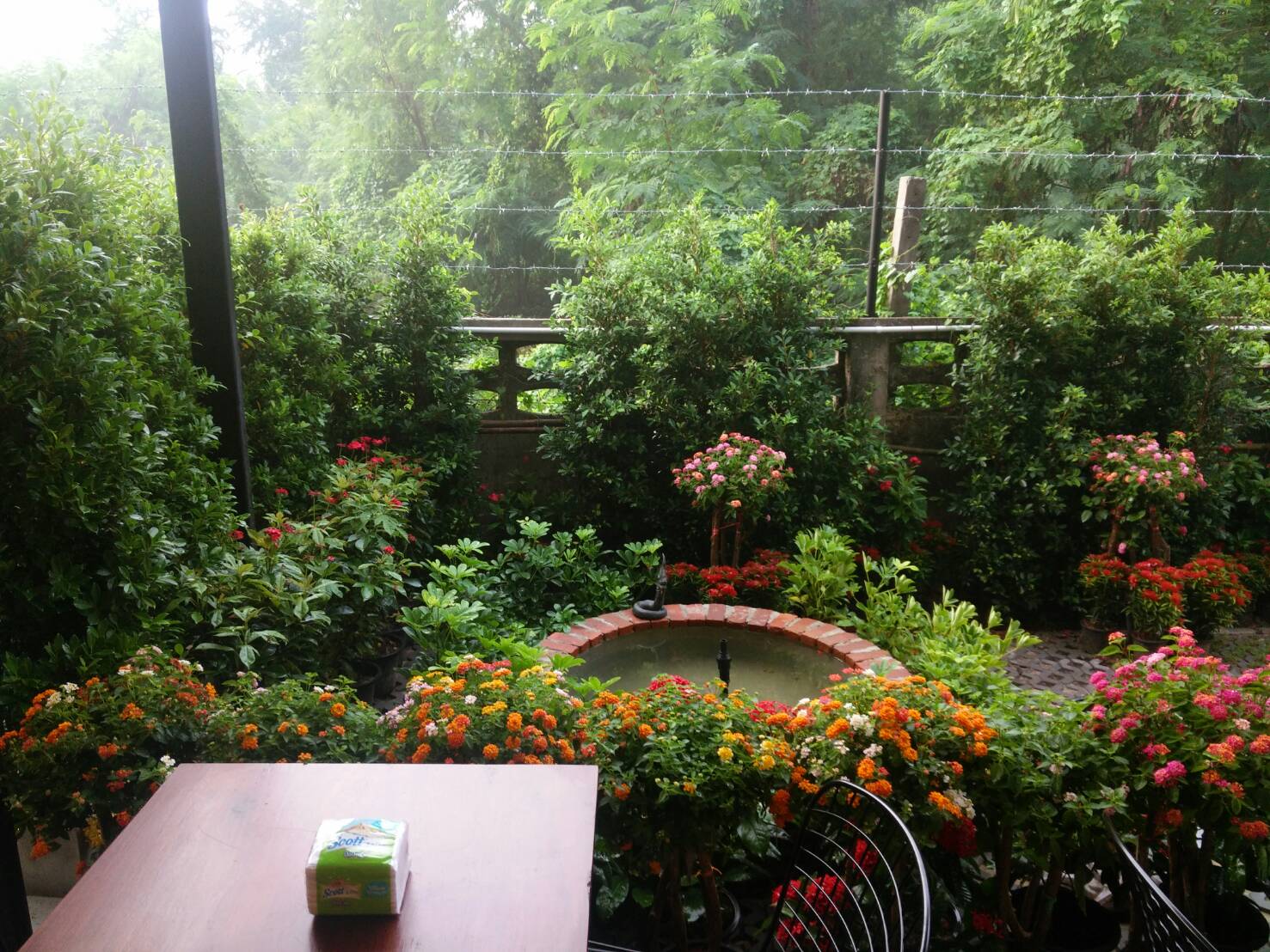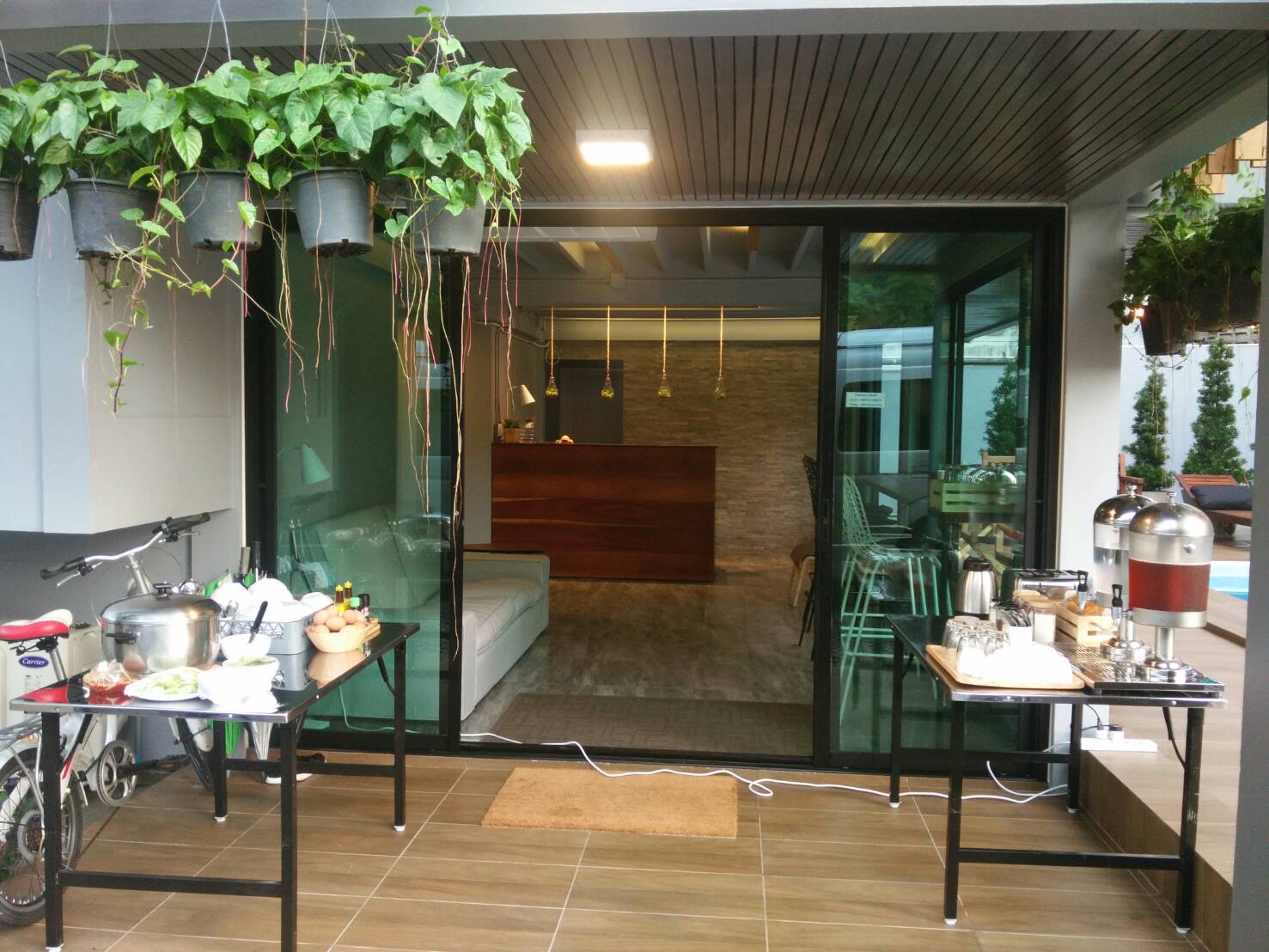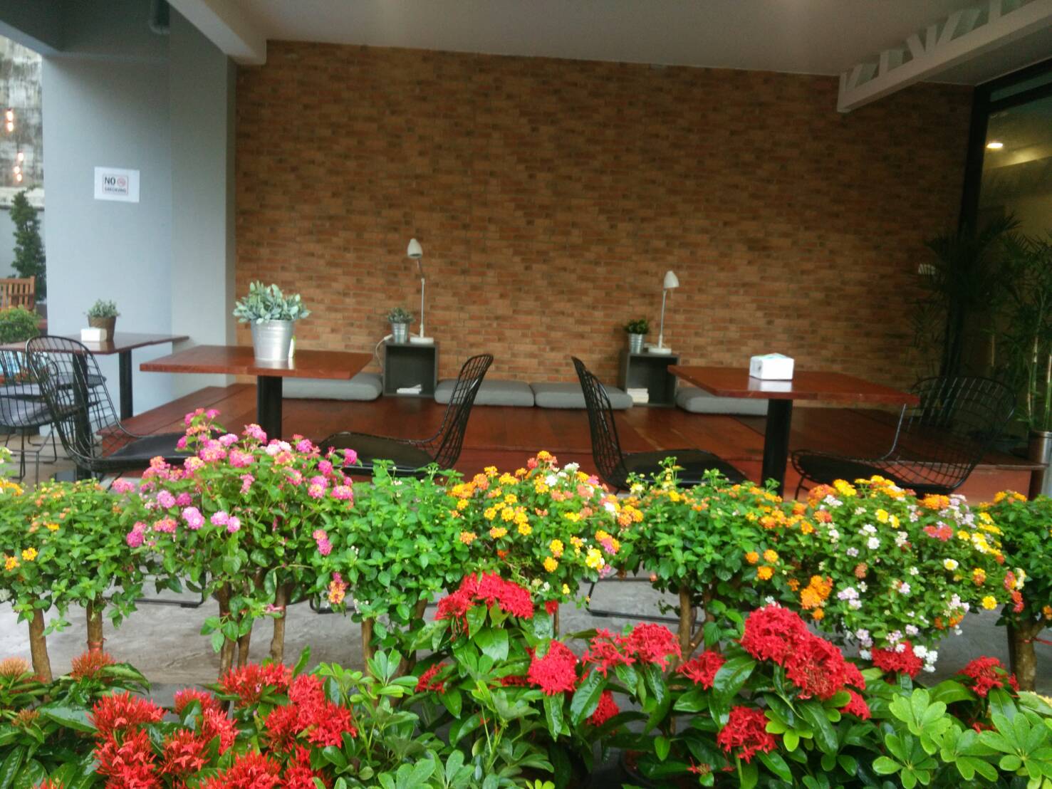 เดินดูเดินชมเสร็จเรียบร้อยก็มานั่งคุยกับน้องเจ้าของ(ไม่ขอออกสื่อ) เลยได้รู้ว่าสวนยังไม่เสร็จดี แล้วสวนข้างในและข้างหน้าทางเข้าส่วนใหญ่เป็นพืชอาหารของผีเสื้อเพื่อให้ผีเสื้อได้มาเลือกทาน ผมนั่งฟังไปคิดไปว่านี่เราอยู่รัชดา-ห้วยขวาง จริงๆใช่ไหมเนี่ย เจ้าของอัธยาศัยดีมาก คุยสนุก คุยเพลินจนได้เวลาเช้คเอ้าท์ ก็เลยขึ้นไปอาบน้ำเก็บข้าวของกลับบ้าน