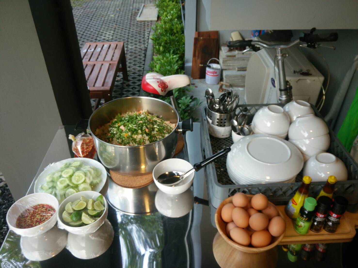 ได้เวลาลงมาทานอาหารเช้า วันนี้เป็น ข้าวผัดไส้กรอก ไข่ลวก ขนมปังปิ้ง น้ำมะตูมฯ มาชมกัน