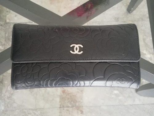 Used Chanel Wallet Camellia Black Lambskin