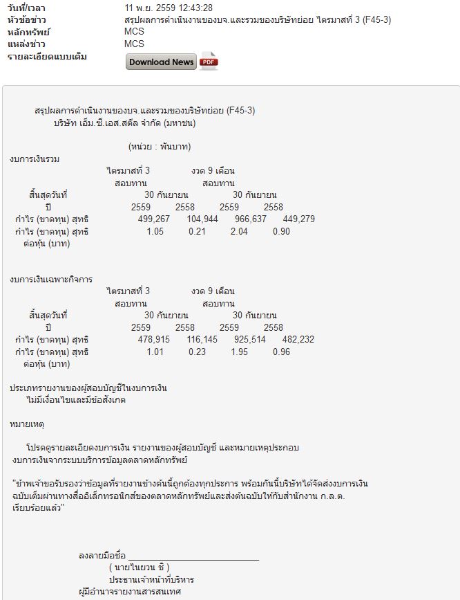 ผลการดำเนินงาน MCS งบออกมาสวยมาก
