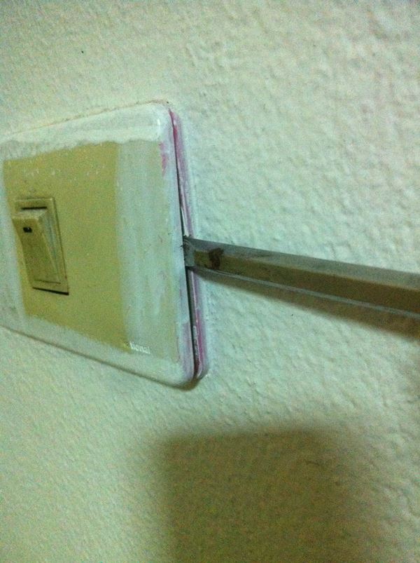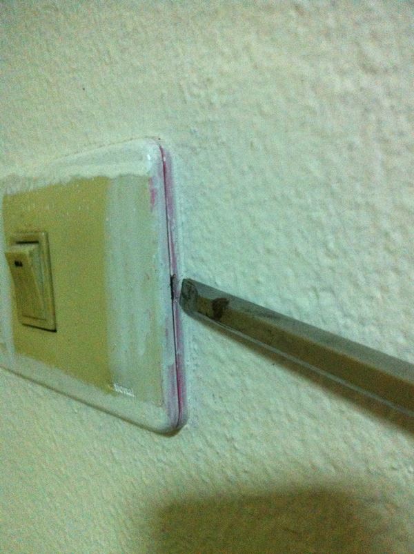 ก้อตามมาด้วยฝาครอบปลั๊กไฟของบ้าน เนื่องจากตอนที่ทาสีผนังไม่ได้ติดเทปกันเปื้อน ผลเลยเปนอย่างที่เห็น