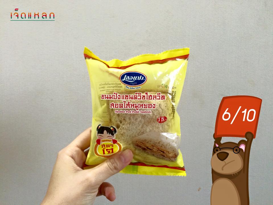 - หมูหยองเจ! มันจะเป็นยังไง? หมีนี่อยากรู้เลยฮะ..แต่พอเอามาชิมแล้ว เนื้อสัมผัสและหน้าตาของมัน ทำให้หมีนึกถึงทูน่าเจมากกว่า 555 คือ ไส้ไม่เป็นฝอยๆ เหมือนหมูหยองปกตินะฮะ ออกแนวเป็นชิ้นเล็กๆ ที่คลุกเคล้ากันด้วยมายองเนสสูตรเจ ที่รสหวานนำมาเลย ปริมาณไส้ให้มากลางๆ ทานกับขนมปังโฮลวีทเนื้อนุ่มนิดๆ ก็พอเข้ากัน แต่ถ้าลดความหวานของมายองเนสลงอีก จะดีมากเลยฮะ