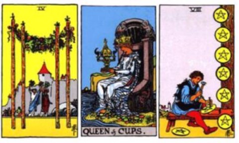 1. The Tower 2. The Chariot 3. THE NINE OF WANDS 4. FIVE OF SWORDS 5. The Fool 6. THE PAGE OF SWORDS 7.THE QUEEN OF WANDS 8.THE QUEEN OF SWORDS 9. The Devil 10. ACE