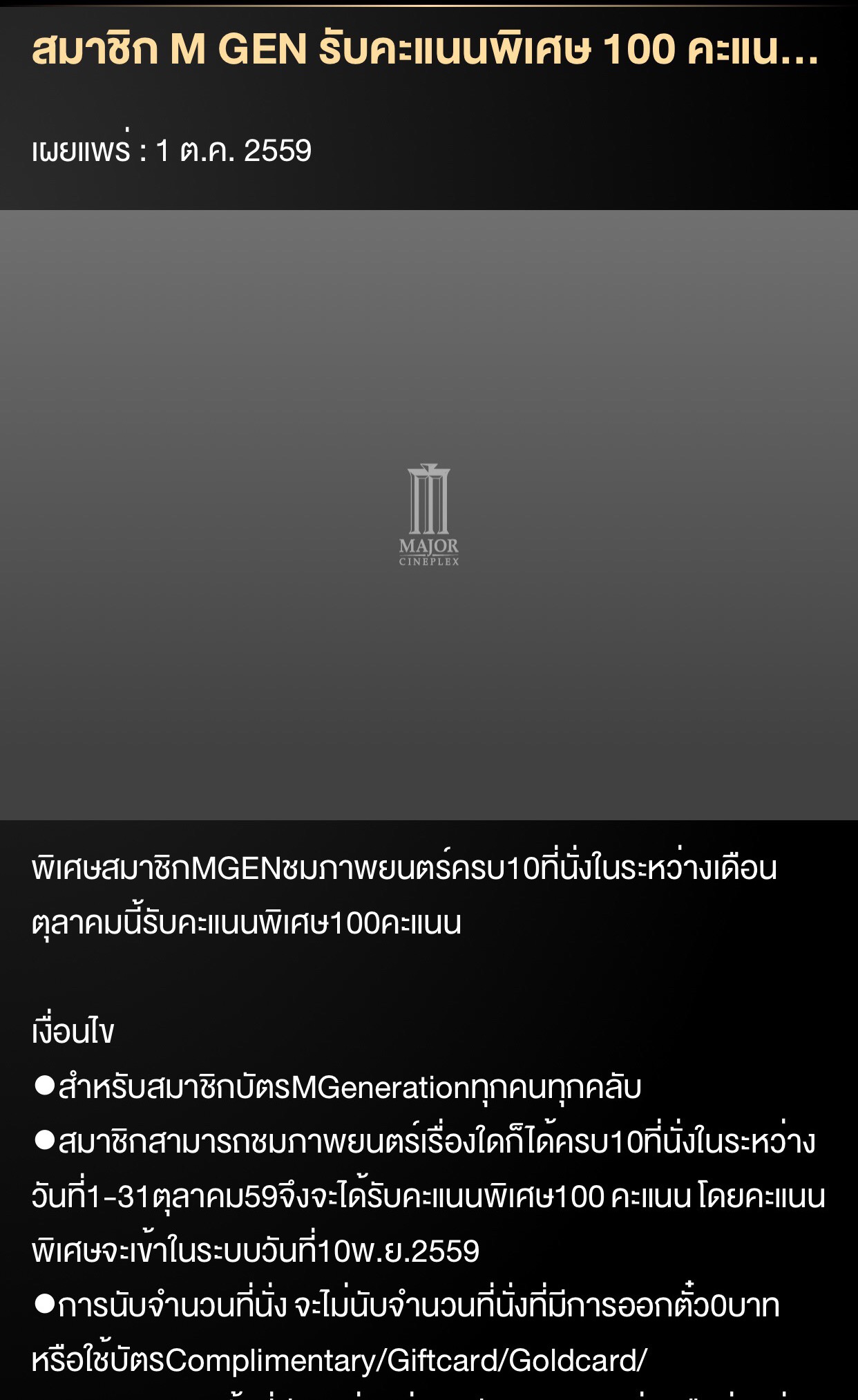 เดือน ต.ค. 59 เครือเมเจอร์ออกโปรโมชั่น ดูหนังครบ 10 ที่นั่ง จะให้คะแนนพิเศษ Mgen 100 คะแนน ตามประกาศบอกว่าจะให้ภายในวันที่ 10 พ.ย. 59 แต่วันนี้วันที่ 12 พ.ย. 59 แล้ว ยังไม่ได้เลยอะ