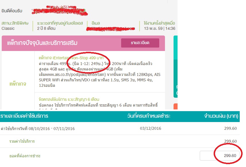 ais โปร 249 ทำไมใบแจ้งหนี้มา 299 ครับ