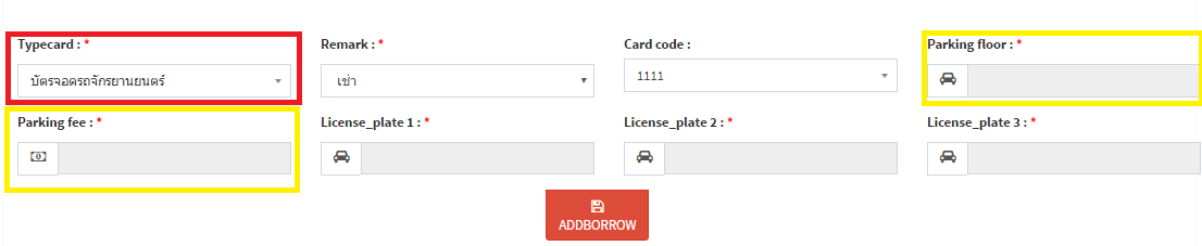 อยากทราบว่าเมื่อเลือก ช่อง select ในช่อง typecard ตัวเลือกใดตัวเลือกหนึ่ง แล้ว ช่องที่ Parking fee กับ Parking floor จะมีเงื่อนไขไม่ให้สามารถพิมลงไปได้ค่ะ (มือใหม่หัดเขียนค่ะ)