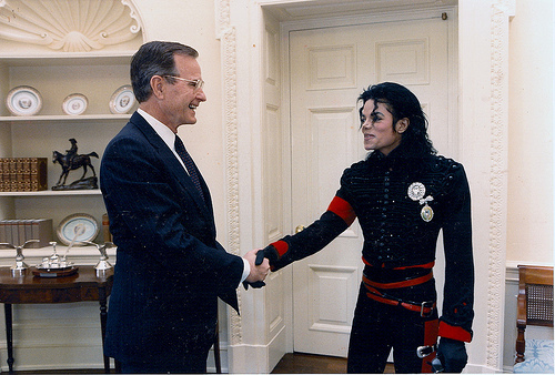 ท่านเชิญไมเคิลเข้าไปทำเนียบขาวช่วงปี 1990 ....ในช่วงนั้นท่านให้เกียรติยกย่องให้ไมเคิลเป็น "ศิลปินแห่งทศวรรษ"