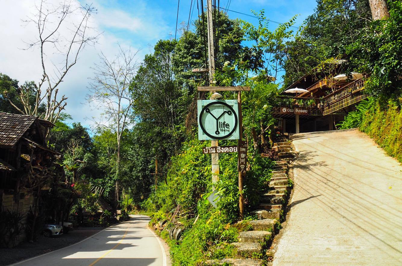 สถานีต่อไปคือที่พักของเรา ม่อนอิงดาว ไปครับไปต่อ แว๊นไปต่ออีกประมาณครึ่งชั่วโมงจะถึงที่พักของเรา แต่ระหว่างทางขึ้นดอยนั้น ร้านกาแฟ ร้านอาหารสองข้างทางอยู่ติดกับริมธารน้ำเยอะมาก แว๊นไปเรื่อยๆ แว๊นไปก็จะเจอป้ายนี้ข้างทาง อีก 6 กิโลก็จะถึง ม่อนอิงดาว มีป้ายบอกตลอดทาง ไม่ต้องกลัวหลง
