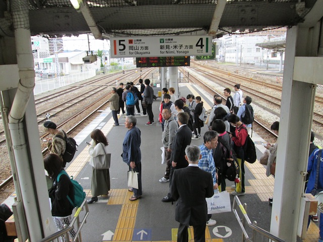 จาก kurashiki ก็นั่ง jr ย้อนกลับไป เมือง okayama ใช้เวลา 10 นาที